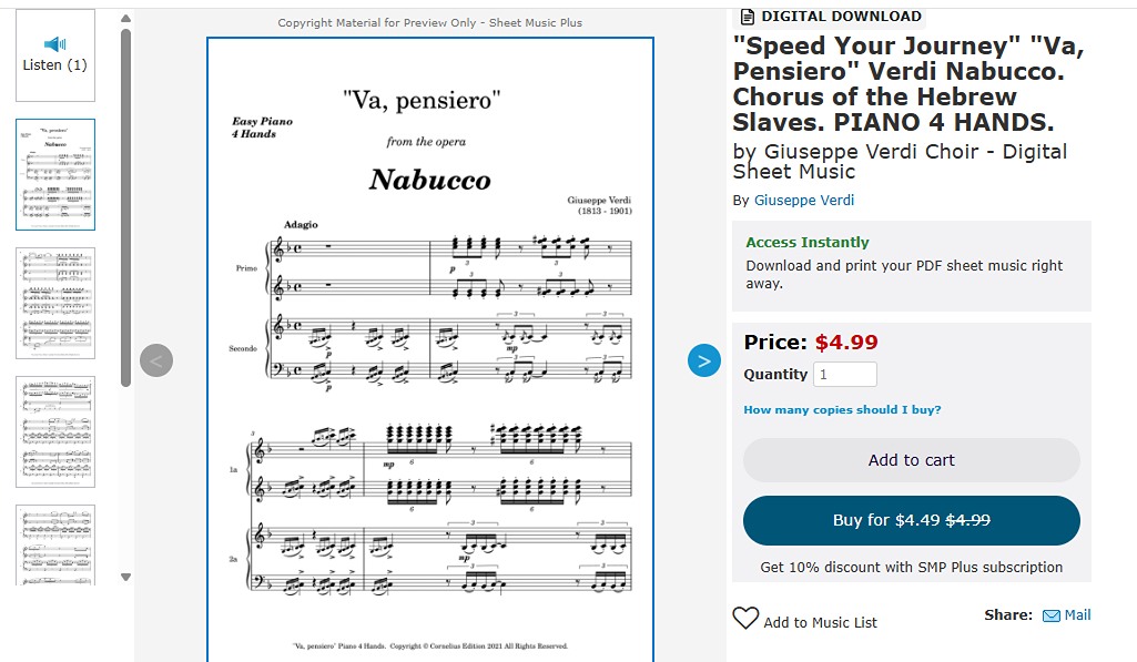 Arrangements at sheetmusicplus.com and sheetmusicdirect.com